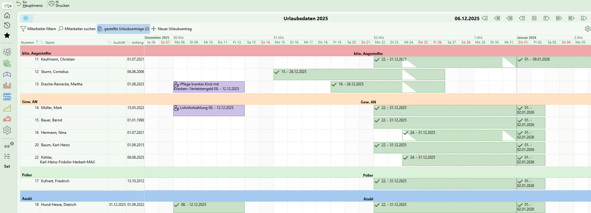| ► | Gesamtüberblick aller beantragten Urlaube eines bestimmten Zeitraumes oder einer bestimmten Mitarbeiterkategorie |